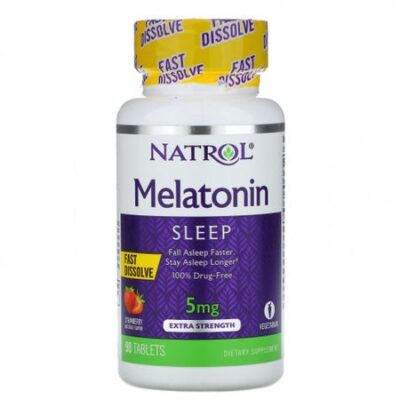 Здоровый сонЗасыпайте быстрее, спите дольшеНе содержит наркотических веществНатуральный вкусПовышенная сила действияПодходит для вегетарианцевПищевая добавкаБыстрорастворимый мелатонин (5 мг) от Natrol:Способствует установлению нормального режима сна.Имеет быстрорастворимую форму (можно принимать в любое время и в любом месте), таблетку не обязательно запивать.Не содержит наркотических веществ и не вызывает привыкания.Мелатонин помогает нормализовать ночной сон при бессоннице.