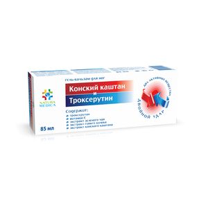 Гель-бальзам косметический с конским каштаном и троксерутином рекомендуется как вспомогательное средство при лечении варикозного расширения вен, тромбофлебите, профилактике тромбозов, отеков и посттравматических поражений вен.Конский каштан в сочетании с троксерутином оказывает мощное венотонизирующее и противоотечное действие.Гель-бальзам укрепляет стенки сосудов, улучшает крово- и лимфообращение, способствует восстановлению прочности и эластичности сосудов, повышает тонус венозных стенок и клапанов.Снимает отечность, создает быстрый эффект свежести и снятия усталости.
