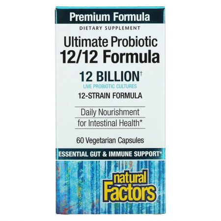 Natural Factors, Лучший пробиотик, формула 12/12, 12 миллиардов, 60 вегетарианских капсул
