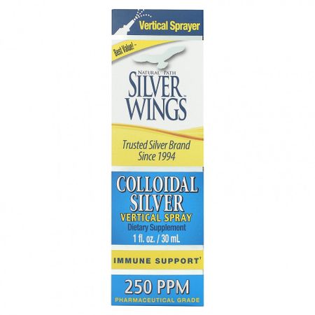 Описание Вертикальный распылитель Бренд продуктов с серебром, которому доверяют с 1994 года Пищевая добавка Укрепляет иммунитет Фармацевтическая степень чистотыБезопасное, эффективное и стабильное средствоФармацевтическая степень чистоты Сертификат ULВысочайшее качество. Содержит коллоидное серебро и воду фармацевтической степени чистоты.Янтарный цвет: Настоящий цвет коллоидного серебра фармацевтической степени чистоты с более высоким содержанием частиц на миллион — янтарный, а не бесцветный.Легко усваивается. Содержит наибольший процент частиц серебра при длине волны 2 нм для оптимального поглощения.Тестирование и безопасность: Мы специально используем тестирование NCS (нано-фотонный корреляционный спектроскоп). Это позволяет наиболее точно определять размер частиц. В целях безопасности размер частиц коллоидного серебра должен составлять от 1 до 100 нм.Что такое PPM?Част./млн (частиц на миллион) равняется количеству частиц серебра в одной порции. 50, 150, 250 и 500 част. / Млн — это уровни концентрации. Рекомендуемая суточная дозировка составляет 10 част./млн. 1 чайная ложка Silver Wings (50 част. / Млн) соответствует 5 чайным ложкам раствора с концентрацией 10 част. / Млн.Атомарное коллоидное серебро фармацевтической степени чистоты с более высоким содержанием частиц на миллион и вода фармацевтической степени чистоты в нашей компании не обрабатываются с помощью электричества, в отличие от многих компаний-конкурентов.Мы специализируемся на производстве продуктов из коллоидного серебра высочайшего качества. Наши продукты безопасны для всей семьи и проверены в независимых клинических, университетских исследованиях, а также в исследованиях в лабораторных условиях.По сравнению с другими продуктами из коллоидного серебра, имеющимися сегодня на полках, коллоидное серебро Silver Wings менее дорогое из-за его эффективности, что делает его наиболее выгодным! Рекомендации по применению Взрослым. 8 впрыскивать в рот и глотать 5 раз в день (1250 мкг = 250 част. / Млн).Дети (от 4 лет): 5 впрыскиваний в рот и проглатывать 2 раза в день (312,5 мкг = 62,5 част. / Млн) **.Для длительного использования: Проконсультируйтесь с лечащим врачом. 40 впрыскиваний = 5 мл, 1,25 мл = 1250 мкг