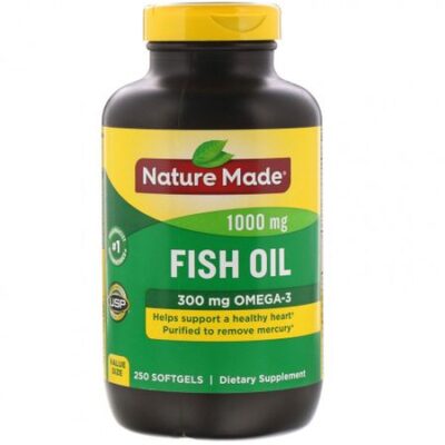 **Проценты от суточной нормы основаны на рационе в 2000 калорий. Бренд № 1 по рекомендациям фармацевтов‡ Пищевая добавка, соответствующая фармакопее США 300 мг омега-3 жирных кислот Очищено от ртути^ Пищевая добавка Помогает поддерживать здоровье сердца Не содержит добавленных красителей Не содержит искусственных ароматизаторов Не содержит дрожжей и крахмала Не содержит глютенаРыбий жир от компании Nature Made производится из океанической рыбы, выловленной в природной среде, а не выращенной на ферме.‡Согласно проведенному Pharmacy Times исследованию рекомендуемых фармацевтами пищевых добавок с омега-3 жирными кислотами и рыбьим жиром.^Очищено с применением самых современных методов и не содержит полихлорбифенилы, диоксины, фураны и ртуть с гарантированной чистотой ниже эквивалентов WHO-TEQ 0,09 ч./млн, 2 ч./трлн и 0,1 ч./млн соответственно.