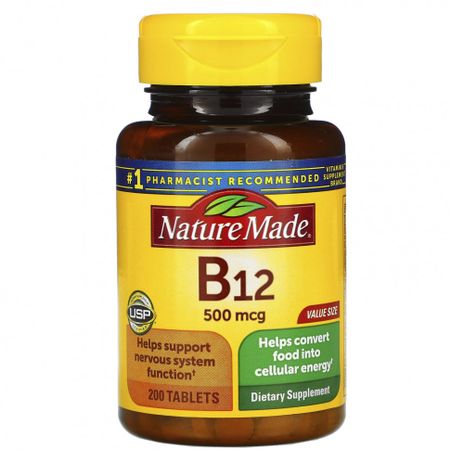 Дополнительные факты Размер порции: 1 таблетка Количество на порцию % Дневная стоимость Витамин B12 (как цианокобаламин) 500 мкг 8333% Кальций (в виде карбоната кальция и двухосновного фосфата кальция) 79 мг 8% Рекомендация фармацевтов №1‡ USP — Проверенная диетическая добавка Поддерживает выработку энергии в клетках организма Без красителей Без искусственных ароматизаторов Без консервантов Без дрожжей или крахмала Не содержит глютенаВитамин B-12 важен для метаболических путей, функция которых — высвобождение клеточной энергии из жиров и белка.‡ Основано на опросе Pharmacy Times среди фармацевтов, рекомендующих добавки с «буквенными» витаминами.
