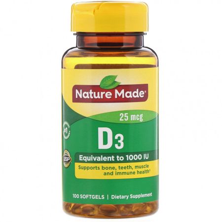 Nature Made, Витамин D3, 25 мкг, 100 мягких таблеток