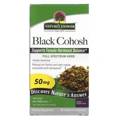 Дополнительные факты Размер порции: 1 капсула Порций на порции: 90 Количество на порцию % Дневная стоимость Черный Cohosh (Actea racemosa) Корень 50 мг † † Daily Value (DV) не установлено Передовая технология Advanced Botanical Fingerprint TechnologyПротестированное и подтвержденное качествоПодтверждено авторитетомПолностью сбалансированный продуктОткройте для себя продукцию Nature’s Answer и доверьтесь ей (trust the Difference…)Вегетарианский продуктВеганский продуктПищевая добавкаПолностью сбалансированный продуктЭтичный продуктПродукт не испытывался на животныхПередовая технология Advanced Botanical Fingerprint TechnologyСила матери-природы в каждой бутылке — точно по ее замыслу.«Истинная ценность растения состоит в его внутреннем природном балансе». Фрэнк Д’Амелио старший, основатель компании Nature’s AnswerСобрав одну из самых полных коллекций растений в мире, компания Nature’s Answer определила уникальные характеристики и установила эталонные стандарты для более чем 800 видов растений. В технологии Advanced Botanical Fingerprint Technology каждый из этих аутентифицированных образцов служат стандартом, по которому оценивается все поступающее сырье.Используя тщательно контролируемые методы экстракции, мы сохраняем целостный баланс полезных свойств каждого исходного растения и передаем их вам, потребителю. Можете быть уверены, что продукт, который вы держите в руках, является подлинным, безопасным, эффективным, целостно сбалансированным, и, без сомнения…Nature’s Answer.Наши высочайшие стандарты распространяются далеко не только на растения.Заслуживающий доверия этичный семейный бизнес, существующий с 1972 годаНаше предприятие имеет регистрацию надлежащей производственной практики cGMP, сертификат производителя органической продукции и сертификат производителя кошерной продукцииКаждый флакон проходит более 100 этапов проверки качестваВертикальная интеграция компании позволяет нам предлагать продукты наивысшего качества по самой выгодной ценеПродукция производится в США со всей ответственностью и любовью