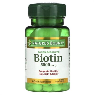 Пищевая ценность Размер порции: 1 быстрорастворимая таблетка Количество в 1 порции % от суточной нормы Биотин (в виде d-биотина) 5000 мкг 16 667% Быстро растворяется Поддерживает здоровье волос, кожи и ногтей Витаминная добавкаПочти 50 лет проверенного качества.Компания Nature’s Bounty заботится о вашем здоровье. На протяжении почти 50 лет мы производим проверенные продукты, опираясь на научные данные и используя только самые чистые ингредиенты. Гарантировано. Таким образом, вы можете получать от жизни максимум удовольствия каждый день. Заряд энергии Натуральный клубничный вкус Гарантированное качество Продукт прошел лабораторные испытанияВитамины группы B способствуют переработке еды в энергию.