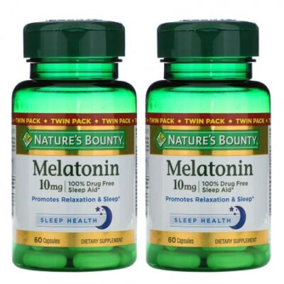 Информация о добавке Размер порции: 1 капсула Количество в 1 порции % от суточной нормы Мелатонин 10 мг ** ** Суточная норма не определена. 100% не наркотическое снотворное средство Способствует расслаблению и сну Здоровый сон Пищевая добавка Клинически изученный ингредиент Гарантированное качество Продукт прошел лабораторные испытанияОколо 50 лет проверенного качестваКомпания Nature’s Bounty заботится о вашем здоровье. Почти 50 лет мы производим проверенные продукты на основе научных достижений из самых чистых ингредиентов, качество которых мы гарантируем. Благодаря нашей продукции вы сможете получать от жизни больше каждый день.Мелатонин от Nature’s Bounty способствует безмятежному сну. Вы проснетесь свежими и полными сил. Мелатонин — это замечательный выбор для людей, периодически страдающих бессонницей.
