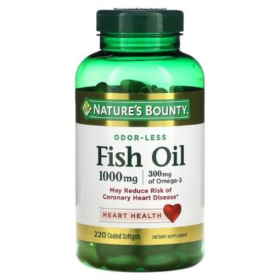 300 мг Омеги-3 Способно снижать риск ишемической болезни сердца* Здоровье сердца Пищеваядобавка Без запаха, в оболочке, сводящей к минимуму рыбную отрыжку Очищено для удаления меркурия Гарантированное качество Протестировано в лаборатории Чистый составПочти 50 лет проверенного качестваNature’s Bounty заботится о вашем здоровье. Почти 50 лет мы производим пользующиеся доверием покупателей продукты, изготовленные из самых чистых ингредиентов — качество гарантировано, подтверждено наукой. Благодаря нашей продукции вы сможете получать от жизни больше каждый день.*Предварительные, но не заключительные исследования показывают, что употребление жирных кислот омега-3 ЭПК и ДГК может снизить риск ишемической болезни сердца. Одна порция рыбьего жира содержит 600 мг общего количества EPA, DHA и других жирных кислот омега-3. См. информацию о составе в отношении общего содержания жира и холестерина.