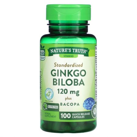 Nature’s Truth, Гинкго билоба плюс бакопа, 120 мг, 100 капсул быстрого действия
