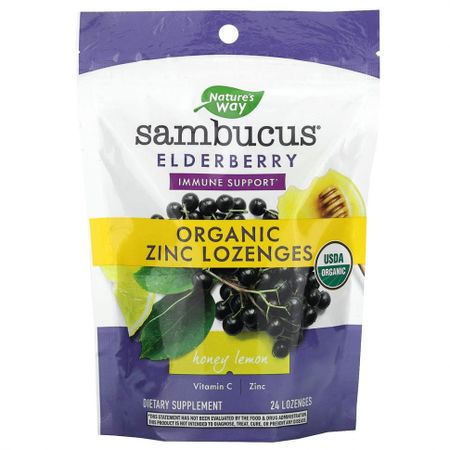 ** Суточная норма не определена. Сертификат USDA OrganicНе содержит глютенаЗамечательный вкусКошерный продуктПищевая добавкаОрганическое происхождение подтверждено Международным комитетом по гарантии качестваЧерная бузина.Столетиями ягоды черной бузины (Sambucus nigra L.) использовались в Европе как средство для укрепления иммунитета в зимнее время.Стандартизированный экстракт.Изготовлен из нашего уникального экстракта ягод черной бузины, естественным образом обогащенных комплексом флавоноидов BioActives®Мягкая экстракция без использования растворителей обеспечивает максимальную эффективность флавоноидовСмесь для поддержки иммунитета тройного действияКаждый леденец содержит 12,5 мг экстракта черной бузины.Великолепный источник цинка (5 мг) и витамина C (90 мг)Сертифицированный органический составПродукт изготовлен из органической черной бузины и подслащен органическим тапиоковым сиропом и органическим тростниковым сахаром.