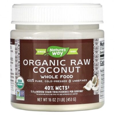 Описание На рынке с 1969 года100% чистое, нерафинированное и холодного отжимаСертификат USDA OrganicСертификат Non-GMO Project VerifiedБез глютенаСертифицированный органический продукт (сертификат Pro-Cert)Аромат и сливочный вкус свежего кокоса!Источник премиального качестваЧистые, неотбеленные и нерафинированные цельные продукты из органических кокосов, Без гексана.Содержит 2 г пищевой клетчатки на порцию.40% среднецепочечных триглицеридов‡: 5,6 г среднецепочечных триглицеридов (лауриновая, каприловая и каприновая кислоты) в 1 порции.‡ Сведения об общем содержании жиров и насыщенных жиров см. в таблице пищевой ценности. Рекомендации по применению Наслаждайтесь вкусом прямо из банки или используйте для приготовления намазывания, соусов, выпечки и многого другого!Принимайте по 1 столовой ложке (14 г) по мере необходимости.Не требует хранения в холодильнике.Примечание. Легко наносится при нагревании выше комнатной температуры (73 ° F). Чтобы смягчить или размягчить, поместите банку в горячую воду на несколько минут и перемешайте. Может произойти отделение кокосового масла, что приведет к образованию белого твердого верхнего слоя. Для рассасывания просто согрейте и перемешайте перед использованием. Ингредиенты Органический кокос.Содержит древесные орехи (кокос). Не содержит искусственных ингредиентов и консервантов. Предупреждения Хранить в недоступном для детей месте. Продукт герметично упакован в целях безопасности. Не следует использовать данный продукт, если внутренняя защитная пленка для сохранения свежести повреждена или отсутствует.Хранить в сухом и прохладном месте.