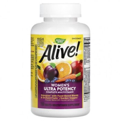 Описание Высокоэффективные витамины группы B, которые помогают превращать пищу в энергиюОдна порция ежедневноМультивитаминная добавкаБез глютена и искусственных красителейПищевые смеси Energizer ™ и порошковая смесь Orchard Fruits ™ / Garden Veggies ™ (60 мг на порцию).Да, вы можете все: сосредоточиться на семье, работать, проводить время с друзьями и даже немного позаботиться о себе. Alive! Once Daily Women’s Ultra Potency — это полноценный мультивитаминный комплекс, разработанный для поддержки вашего многозадачного образа жизни благодаря 100% или более суточной нормы 20 витаминов и минералов и не менее 200% суточной нормы 12 витаминов и минералов, включая премиальные витамины группы B до преобразовывать пищу в клеточную энергию — все в одной удобной таблетке. Рекомендации по применению Женщинам принимать по 1 таблетке в день, желательно во время еды. Не предназначено для мужчин и детей. Не следует превышать рекомендуемую дозировку. Ингредиенты Целлюлоза, стеариновая кислота, кроскармеллоза натрия, диоксид кремния, стеарат магния, гипромеллоза, желатин, глицерин, коричневый рис. Предупреждения Не принимайте в период беременности или кормления грудью. Если вы страдаете дисфункцией почек, нарушением свертываемости крови, принимаете Coumadin® (варфарин) или любые другие препараты, перед применением проконсультируйтесь с медицинским работником.Случайная передозировка продуктов, содержащих железо, — основная причина отравлений со смертельным исходом среди детей до 6 лет. Хранить продукт в недоступном для детей месте. В случае передозировки следует немедленно обратиться к врачу или в токсикологический центр. Хранить в недоступном для детей месте. Не следует использовать продукт, если защитная пленка под крышкой с функцией защиты от детей повреждена или отсутствует. Хранить с плотно закрытой крышкой. Хранить при комнатной температуре. Избегать воздействия высоких температур и прямых солнечных лучей. Пищевая ценностьРазмер порции: 1 таблетка Количество в 1 порции% от суточной нормыВсего углеводов.<, 1 г<, 1 %†Витамин A (в виде 50% [675 мкг] бета-каротина, 50% [675 мкг] ретинилацетата)1350 мкг150%Витамин C (аскорбиновая кислота)180 мг200%Витамин D3 (в виде холекальциферола)50 мкг250%Витамин E (в виде d-альфа токоферил сукцината)50 мг333%Витамин K (в виде фитонадиона)150 мкг125%Тиамин (в виде тиамина мононитрата)20 мг1667%Рибофлавин20 мг1538%Ниацин (в виде никотинамида)40 мг250%Витамин B6 (в виде пиридоксина гидрохлорида)20 мг1176%Фолиевая кислота