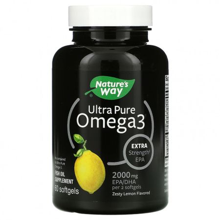 Nature’s Way, Ultra Pure Omega3, пикантный лимон, 1000 мг, 60 мягких таблеток