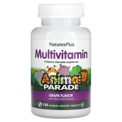 NaturesPlus, Детская добавка с мультивитаминами и микроэлементами, натуральный ароматизатор «Виноград», 180 жевательных таблеток в виде фигурок животных