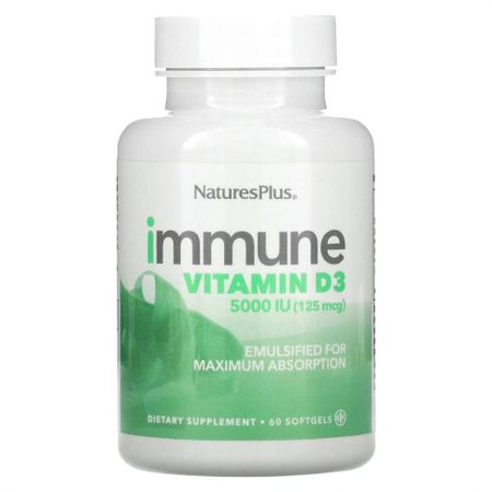 Эмульгированный для максимального усвоения Пищевая добавка Без глютена Витамин D3 необходим для сильного и здорового иммунного ответа. NaturesPlus® Immune Vitamin D3 5000 МЕ обеспечивает непревзойденное усвоение благодаря эмульсии микрочастиц, которая обеспечивает оптимально микронизированные питательные частицы D3. Смесь EFASorb ™ (специализированный комплекс питательных веществ) дополнительно усиливает их усвоение в кишечнике. Результат — максимальная эффективность с высокоэффективным витамином D3 для иммунной системы NaturesPlus (5000 МЕ). Укрепите иммунитет и общее самочувствие! Можно принимать с другими препаратами для иммунитета NaturesPlus.
