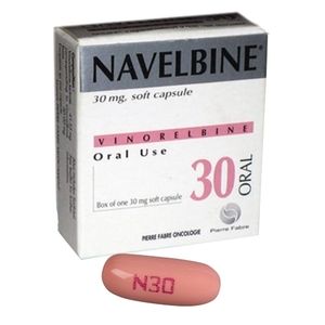 Показания к применениюНемелкоклеточный рак легкого, рак молочной железы, рак предстательной железы, резистентный к гормонотерапии (в комбинации с малыми дозами пероральных кортикостероидов).Применение при беременности и кормлении грудьюПротивопоказано при беременности. На время лечения следует прекратить грудное вскармливание.ПротивопоказанияГиперчувствительность к винка-алкалоидам или другим составным частям препарата; содержание нейтрофилов менее 1500 клеток/мкл крови; содержание тромбоцитов менее 75000 клеток/мкл крови (при в/в введении) и менее 100000 клеток/мкл (при приеме внутрь); тяжелая инфекция (сопутствующая назначению препарата или перенесенная в течение 2 нед); выраженная недостаточность функции печени, не связанная с опухолевым процессом; потребность в постоянной оксигенотерапии (у больных с опухолью легкого); заболевания и состояния, приводящие к снижению всасывания в ЖКТ (для капсул); беременность, период кормления грудью.С осторожностью использовать при дыхательной недостаточности, угнетении костномозгового кроветворения (в т.ч. после предыдущей химиотерапии или лучевого лечения), запорах или явлениях кишечной непроходимости в анамнезе, нейропатии в анамнезе.СоставВинорелбина тартрат (винорелбина основание) — 41,55 (30) мгВспомогательные вещества: этанол безводный; вода очищенная; глицерин; макрогол 400 — q.s.Оболочка капсул: желатин, глицерин 85%, анидрисорб 85/70 (D-сорбитол и 1,4-сорбитан), среднецепочечные триглицериды PHOSAL 53 MST (фосфатидилхолин, глицериды, этанол), железа оксид красный Е172, железа оксид желтый Е171 — q.s.Взаимодействие с другими препаратамиПри одновременном применении препарата с другими лекарственными средствами, обладающими токсическим действием на костный мозг (независимо от способа введения) возможно усиление побочных эффектов, связанных с миелосупрессией.При совместном применении с митомицином С возможно развитие острой дыхательной недостаточности.При применении с паклитакселом повышается риск нейротоксичности.Применение на фоне лучевой терапии приводит к радиосенсибилизации. При применении Навельбина после лучевой терапии возможно повторное развитие лучевых реакций.Одновременное применение препарата с индукторами и ингибиторами цитохрома P450 может привести к изменению фармакокинетики винорелбина.