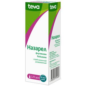 Показания к применениюЛечение круглогодичного и сезонного аллергического ринита, включая поллиноз (сенную лихорадку) у взрослых и детей с 4-х лет (устранение симптомов, таких как: боль и ощущение давления в области околоносовых пазух, заложенность носа, насморк, чихание, зуд в носу, слезотечение).Применение при беременности и кормлении грудьюПеред применением препарата Назарел во время беременности и в период лактации необходимо проконсультироваться с врачом.Беременным и кормящим женщинам препарат можно назначать только в том случае, когда ожидаемая польза для пациентки превышает любой возможный риск для плода или ребенка.Противопоказания— Гиперчувствительность к флутиказона пропионату или любому другому компоненту препарата.— Детский возраст до 4 лет.— Недавно перенесенная травма носа или операция в полости носа.Состав1 доза содержит: действующее вещество флутиказона пропионат 50 мкг вспомогательные вещества: полисорбат 80 0,005 мг целлюлоза микрокристаллическая + кармеллоза натрия (авицел RC-591) 1,55 мг глюкоза безводная 5,00 мг бензалкония хлорид (50% раствор) 0,04 мг фенилэтанол 0,25 мг вода очищенная до 100 мг.