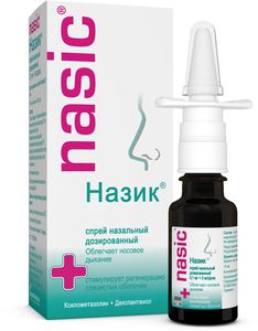 Назальный спрей Назик — комбинированный назальный препарат для местного применения, содержащий Ксилометазолин и Декспантенол. Ксилометазолин относится к группе местных сосудосуживающих средств (деконгестантов) с альфа- адреномиметической активностью, вызывает сужение кровеносных сосудов слизистой оболочки полости носа, восстанавливает проходимость носовых ходов, облегчает носовое дыхание. Действие препарата обычно наступает через несколько минут после его применения и продолжается до 10 часов. Декспантенол — витамин группы В — производное пантотеновой кислоты. Декспантенол превращается в организме в пантотеновую кислоту, являющуюся составной частью коэнзима А и участвует в процессах ацетилирования, углеводном и жировом обмене, в синтезе ацетилхолина, кортикостероидов, порфиринов, стимулирует регенерацию кожи, слизистых оболочек, нормализует клеточный метаболизм, ускоряет митоз и увеличивает прочность коллагеновых волокон. Оказывает регенерирующее, метаболическое и слабое противовоспалительное действие.
