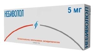 Показания к применениюАртериальная гипертензия. ИБС: профилактика приступов стенокардии напряжения. Хроническая сердечная недостаточность (в составе комбинированной терапии).Применение при беременности и кормлении грудьюПрименение при беременности возможно только по строгим показаниям (в связи с возможным развитием у новорожденных брадикардии, артериальной гипотензии, гипогликемии и паралича дыхания). Прием небиволола необходимо прекратить за 48-72 ч до родов. В тех случаях, когда это невозможно, следует обеспечивать строгое наблюдение за новорожденными в течение 48-72 ч после родов.ПротивопоказанияОстрая сердечная недостаточностьхроническая сердечная недостаточность в стадии декомпенсации (требующая в/в введения препаратов, обладающих положительным инотропным действием)выраженная артериальная гипотензия (систолическое АД менее 90 мм рт.ст.)СССУ, включая синоатриальную блокадуAV-блокада II и III степени (без искуственного водителя ритма)брадикардия (ЧСС менее 60 уд./мин)кардиогенный шокфеохромоцитома (без одновременного применения альфа-адреноблокаторов)метаболический ацидозвыраженные нарушения функции печенибронхоспазм и бронхиальная астма в анамнезетяжелые облитерирующие заболевания периферических сосудов (перемежающаяся хромота, синдром Рейно)миастениядепрессиядетский и подростковый возраст до 18 летповышенная чувствительность к небивололу.Побочное действиеСо стороны ЦНС и периферической нервной системы: головная боль, головокружение, чувство усталости, парестезии, депрессия, снижение способности к концентрации внимания, сонливость, бессонница, кошмарные сновидения; очень редко — обморок, галлюцинации. Со стороны пищеварительной системы: тошнота, запор, диарея, сухость во рту, метеоризм, рвота. Со стороны сердечно-сосудистой системы: брадикардия, ортостатическая гипотензия, одышка, отеки, острая сердечная недостаточность, AV-блокада, синдром Рейно, кардиалгии. Со стороны кожи и подкожных тканей: кожная сыпь эритематозного характера, зуд; очень редко — усугубление течения псориаза. Аллергические реакции: в отдельных случаях — ангионевротический отек. Прочие: бронхоспазм, сухость глаз.СоставТаблетки 1 таб. небиволол (в форме гидрохлорида) 5 мг.