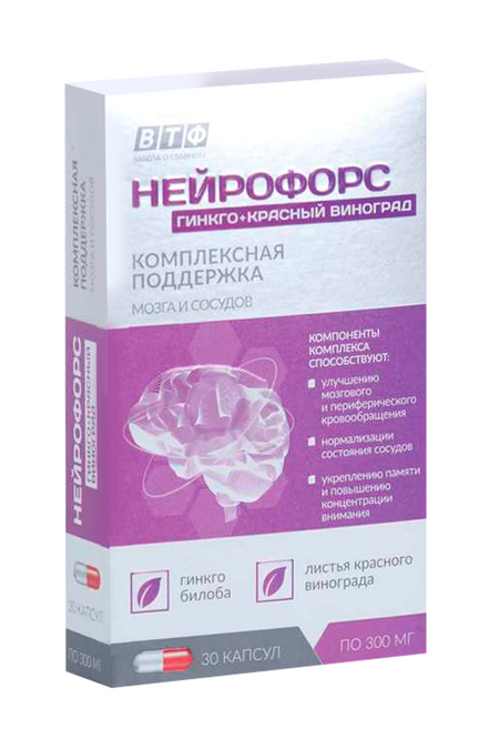 Главная » Аптека Нейрофорс гинкго/красный виноград, 30 шт, капсулы Просмотров 8 Внешторг Фарма ООО/ВТФ ООО