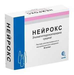 Показания к применению— Острые нарушения мозгового кровообращения (в составе комплексной терапии);— дисциркуляторная энцефалопатия;— нейроциркуляторная дистония;— легкие когнитивные расстройства атеросклеротического генеза;— тревожные состояния при невротических и неврозоподобных состояниях;— абстинентный синдром при алкоголизме с преобладанием неврозоподобных и вегетативно-сосудистых расстройств;— острая интоксикация антипсихотическими лекарственными средствами.Применение при беременности и кормлении грудьюПрепарат противопоказан при беременности и в период грудного вскармливания.ПротивопоказанияПовышенная индивидуальная чувствительность к препарату;острая почечная недостаточность;острая печеночная недостаточность;беременность;грудное вскармливание;детский возраст.Побочное действиеПри парентеральном введении (особенно в/в струйном): сухость и металлический привкус во рту, ощущения разливающегося тепла во всем теле, першение в горле и дискомфорт в грудной клетке, ощущение нехватки воздуха (как правило, связаны с чрезмерно высокой скоростью введения и носят кратковременный характер).При длительном применении: тошнота, метеоризм, нарушения сна (сонливость или нарушение засыпания).Возможно: аллергические реакции.СоставРаствор для внутривенного и внутримышечного введения 1 млдействующее вещество: этилметилгидроксипиридина сукцинат 50 мгвспомогательные вещества: натрия дисульфит — 1 мг; вода для инъекций — до 1 млВзаимодействие с другими препаратамиУсиливает действие бензодиазепиновых анксиолитиков, противоэпилептических (карбамазепин), противопаркинсонических (леводопа) лекарственных средств, нитратов.Уменьшает токсические эффекты этанола.