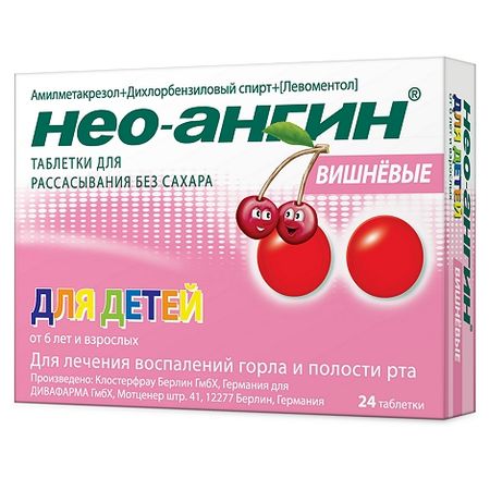 Нео-Ангин без сахара вишня таб. для рассасыв. №24