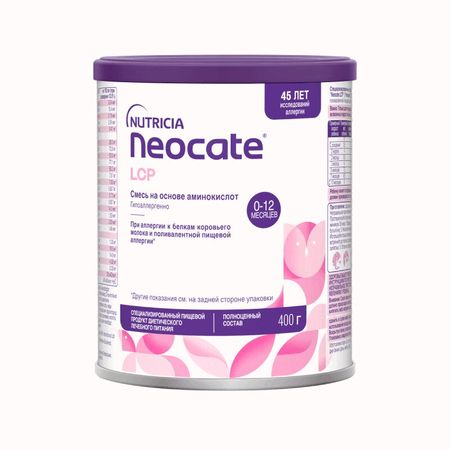 Сухая смесь на основе аминокислот, обогащенная длинноцепочечными полиненасыщенными жирными кислотами.Ключевые особенностиНеокейт LCP содержит:аминокислоты, соответствующие спектру грудного молокалегкоусвояемые жиры, углеводы, минералы и витаминыполинасыщенные жирные кислоты DHA и ARA* для правильного интеллектуального развития малыша.В Неокейт LCP НЕТ: цельного белка коровьего молок и лактозы, глютена, сахарозы и фруктозы, генетически измененных компонентов и холестерина.*DHA и ARA = докозагексаеновая и арахидоновая кислота.ГИПОАЛЛЕРГЕННО.Имеет нейтральный вкус.