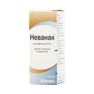 Показания к применениюПрофилактика и лечение послеоперационной боли и воспалительных явлений при хирургических вмешательствах по поводу удаления катаракты.Применение при беременности и кормлении грудьюНе рекомендуется применение при беременности и в период лактации. При необходимости назначения в период лактации грудное вскармливание рекомендуется прекратить на время лечения.Испытания на животных выявили репродуктивную токсичность. При исследовании воздействия непафенака на репродуктивные органы крыс, прием токсических доз >10 мг/кг приводил к дистоции, увеличению количества самопроизвольных абортов на этапе после имплантации, снижению массы тела и роста эмбрионов, снижению выживаемости эмбрионов. У беременных крольчих прием малотоксичных доз 30 мг/кг приводил к увеличению пороков развития потомства.Противопоказания- бронхиальная астма, крапивница, острый ринит, вызванные приемом ацетилсалициловой кислоты или других нестероидных противовоспалительных препаратов;- возраст до 18 лет (безопасность и эффективность применения препарата у детей не исследовались);- повышенная чувствительность к компонентам препарата и к другим НПВП.Побочное действиеМестные: в 1-10% случаев наблюдается точечный кератит, боль и зуд в глазу, неясность зрения, сухость конъюнктивы, ощущение инородного тела, образование корок на краях век. В 0.1-1% случаев — ирит, кератит, отложения в роговице, хориоидальный выпот, выделения из глаз, фотофобия, раздражение глаз, аллергический конъюнктивит, нарушения со стороны век, дискомфорт в глазах, повышенное слезоотделение, гиперемия конъюнктивы.Системные побочные эффекты: в 1-10% случаев — головная боль. В 1-4% случаев — повышение АД, тошнота, рвота, синусит. В 0.1-1% случаев — сухость во рту, растяжимость кожи (дерматохалазис), повышенная чвствительность чувствительность.Постмаркетинговые наблюдения (частота неизвестна): язвенный кератит, дефект/заболевание эпителия роговицы, повреждение роговицы, образование воспалительного инфильтрата в передней камере глаза, ухудшение процесса заживления роговицы, снижение остроты зрения, рубец на роговице, помутнение роговицы.Пациентам с признаками повреждения роговицы следует немедленно отменить применение препарата и тщательно обследовать состояние роговицы. Опыт применения нестероидных противовоспалительных препаратов для местного применения предполагает, что пациенты с осложнениями после хирургических офтальмологических вмешательств, денервацией роговицы, дефектами эпителия роговицы, сахарным диабетом, поверхностными заболеваниями глаз (например, синдром сухого глаза), ревматоидным артритом или повторными хирургическими вмешательствами, проведенными в течение короткого промежутка времени, могут иметь повышенный риск развития побочных реакций со стороны роговицы, что может создать угрозу потери зрения.
