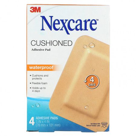 Описание Амортизирует и защищаетГибкая пенаВмещает до 4 дней4 липкие подушечки 76 мм x 101 мм (3 дюйма x 4 дюйма)Не производится из натурального латексаПлавайте или принимайте душ с уверенностью.Подходит для:Водостойкая защита ран, таких как порезы, незначительные ожоги, ссадины и царапины Укрепление ран при случайном удареСоставМягкий поролон и впитывающая прокладкаОстается во время купания или плаванияПрилипает к влажной или потной кожеДышащая пена Рекомендации по применению Тщательно очистите и высушите рану и окружающую кожу.Нанесите на рану лейкопластырь. Не растягивайте липкую подушку при нанесении.Плотно прилегает к коже.Замените клейкую подушечку, если:Он начинает протекать или больше не прилипает к коже.На липкой подушке есть дыры или трещины.В соответствии с рекомендациями врача.Как удалитьОсторожно приподнимите край липкой подушки и медленно снимите ее на 180 градусов. Предупреждения При появлении признаков инфекции, таких как жар, боль, покраснение, отек, зуд, сыпь или жжение, обратитесь к врачу.Всегда читайте информацию на этикетке. Если симптомы не исчезнут, обратитесь к врачу. Стерильность гарантирована, если упаковка не открыта или не повреждена.