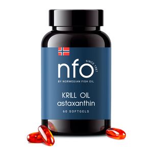NFO® Omega-3 Kril Oil (НФО Омега-3 Масло Криля) – натуральный высокоочищенный комплекс Омега-3 и астаксантина в биодоступной форме с усиленной антиоксидантной защитой всего организма.Масло криля для NFO® Omega-3 Kril Oil добывается из морских планктонных ракообразных, обитающих в экологически чистом холодном Норвежском море. Название рачков имеет голландское происхождение и переводится как «мелочь». Из-за своих крошечных размеров криль не способен накапливать в своем организме токсичные вещества и в этом смысле является более чистым исходным сырьем, чем рыба.Масло криля, как и рыбий жир из глубоководной рыбы холодных морей, содержит ценные омега-3 полиненасыщенные жирные кислоты эйкозапентаеновую (ЭПК) и докозагексаеновую (ДГК).Докозагексаеновая кислота (ДГК). Входит в состав серого вещества головного мозга, глазной сетчатки, оболочек клеток других органов и систем. ДГК играет первостепенную роль в формировании головного мозга и нервной системы человека, влияет на скорость передачи нервного импульса.Эйкозапентаеновая кислота (ЭПК). Стимулирует регенерацию клеточных мембран, нормализует механизмы транспорта липидов по кровяному руслу, активизирует иммунитет, улучшает абсорбцию жиров в пищеварительном тракте, повышает антиоксидантные функции организма.Очень важно то, что в комплексе NFO® Omega-3 Kril Oil ЭПК и ДГК находятся в связке с фосфолипидами, поэтому имеют более высокую биодоступность и легче усваиваются.Помимо полиненасыщенных жирных кислот ЭПК и ДГК, комплекс NFO® Omega-3 Kril Oil обогащен очень мощным антиоксидантом — астаксантином, который называют «королем антиоксидантов». Астаксантин главным образом обеспечивает защиту клеток от оксидативного стресса, обеспечивая нормальную работу всех органов и систем.По антиоксидантному действию астаксантин: в 65 раз мощнее витамина С в 100 раз действеннее витамина Е в 54 раза мощнее бета-каротинаАстаксантин, находящийся в комплексе, имеет природное происхождение — добывается из микроводоросли Haematococcus Pluvialis.Комплекс NFO® Omega-3 Kril Oil помогает снизить уровень триглицеридов и холестерина в крови, и увеличить производство энергии. У принимающих масло криля наблюдается улучшение общего состояния организма и укрепление иммунитета. Это одно из лучших средств для профилактики инфарктов, инсультов и гипертонии.NFO Омега-3 Масло Криля замедляет процессы старения кожи, способствует образованию коллагена и эластина, защищает клетки кожи от разрушения, улучшает влажность, эластичность и внешний вид кожиФункциональные особенности Активно влияет на внешний вид кожи, способствует увлажнению, разглаживанию морщин, препятствует старению Способствует снижению уровня «плохого» холестерина в крови (ЛПНП) Активизирует иммунитет, уменьшает интенсивность воспалительных процессов Улучшает состояние репродуктивной системы, снижает клинические проявления дисменорреи у женщин Уменьшает риск сердечно-сосудистых заболеваний, способствует нормализации артериального давления Улучшает память, внимание, мыслительные функции