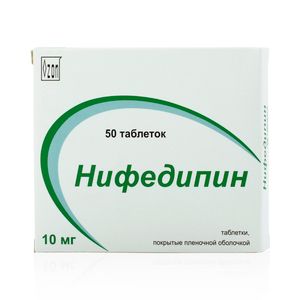 Показания к применениюПрофилактика приступов стенокардии (в т.ч. вазоспастической стенокардии), в отдельных случаях — купирование приступов стенокардии; артериальная гипертензия, гипертонические кризы; болезнь Рейно.Применение при беременности и кормлении грудьюАдекватных и строго контролируемых исследований безопасности нифедипина при беременности не проводилось. Применение нифедипина при беременности не рекомендуется.Поскольку нифедипин выделяется с грудным молоком, следует избегать его применения в период лактации либо прекратить грудное вскармливание во время лечения.В экспериментальных исследованиях было выявлено эмбриотоксическое, фетотоксическое и тератогенное действие нифедипина.ПротивопоказанияАртериальная гипотензия (систолическое АД ниже 90 мм рт.ст.), коллапс, кардиогенный шок, тяжелая сердечная недостаточность, тяжелый аортальный стеноз; повышенная чувствительность к нифедипину.Побочное действиеСо стороны сердечно-сосудистой системы: гиперемия кожных покровов, ощущение тепла, тахикардия, артериальная гипотензия, периферические отеки; редко — брадикардия, желудочковая тахикардия, асистолия, усиление приступов стенокардии.Со стороны пищеварительной системы: тошнота, изжога, диарея; редко — ухудшение функции печени; в единичных случаях — гиперплазия десен. При длительном приеме в высоких дозах возможны диспептические симптомы, повышение активности печеночных трансаминаз, внутрипеченочный холестаз.Со стороны ЦНС и периферической нервной системы: головная боль. При длительном приеме в высоких дозах возможны парестезии, боли в мышцах, тремор, легкие расстройства зрения, нарушения сна.Со стороны системы кроветворения: в единичных случаях — лейкопения, тромбоцитопения.Со стороны мочевыделительной системы: увеличение суточного диуреза. При длительном приеме в высоких дозах возможны нарушения функции почек.Со стороны эндокринной системы: в единичных случаях — гинекомастия.Аллергические реакции: кожная сыпь.Местные реакции: при в/в введении возможно жжение в месте инъекции.В течение 1 мин после внутрикоронарного введения возможно проявление отрицательного инотропного действия нифедипина, увеличение ЧСС, артериальная гипотензия; эти симптомы постепенно исчезают через 5-15 мин.СоставНифедипин 10 мг