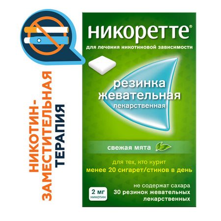 Никоретте 2 мг, 30 шт, жевательная резинка свежая мята