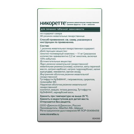 Никоретте фруктовый вкус резинка жев. 2мг №30