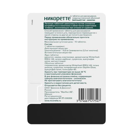 Никоретте мятные таб.п о для рассасывания 2мг №20