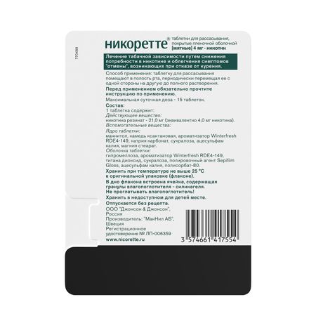 Никоретте мятные таб.п о для рассасывания 4мг №20