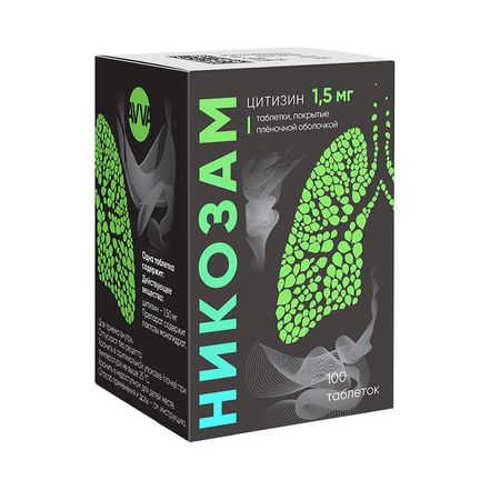 Показания Лечение никотиновой зависимости (для облегчения отказа от курения). Фармакологическое действие Н-холиномиметик. Возбуждает ганглии вегетативной нервной системы, рефлекторно возбуждает дыхание, вызывает выделение адреналина из мозгового вещества надпочечников, повышает артериальное давление. При близком сходстве с механизмом действия никотина, цитизин обладает гораздо более низкой токсичностью и большим терапевтическим индексом. Цитизин конкурентно подавляет взаимодействие никотина с соответствующими рецепторами, что ведет к постепенному уменьшению и исчезновению никотиновой (табачной) зависимости. Фармакокинетика После приема внутрь цитизин быстро всасывается из ЖКТ. Cmax активного вещества в плазме крови составляет 15.55 нг/мл и достигается в течение 0.92 ч. У мышей высокие плазменные концентрации цитизина после перорального и в/в применения устанавливаются в печени, почках и надпочечниках. Vd у кроликов после перорального и внутривенного применения составляет 6.21 л/кг и соответственно 1.02 л/кг. Цитизин не метаболизируется в организме. До 64% дозы выводится в неизмененном виде с мочой в пределах 24 ч. T1/2 составляет приблизительно 4 ч. Среднее время удержания (MRT) цитизина в организме составляет приблизительно 6 ч Лекарственное взаимодействие После прекращения табакокурения могут усиливаться побочные действия теофиллина, ропинирола, клозапина и оланзапина. При одновременном применении с ацетилхолином, карбахолом, галантамином, пиридостигмином, ривастигмином, дистигмином возможно усиление холиномиметического побочного действия (слюнотечение, слезотечение, бронхиальная секреция с кашлем и риск возникновения приступа астмы, сужение зрачка, колики, тошнота, рвота, частое мочеиспускание, повышенный тонус мышц или внезапные сокращения мышц). Применение одновременно с ловастатином, симвастатином, флувастатином, правастатином повышает риск появления болей в мышцах. Одновременное применение цитизина с гипотензивными средствами (в т.ч. с пропранололом) может ослабить их эффект.