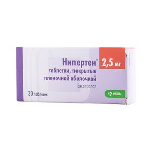 Показания к применению артериальная гипертензия, ИБС: профилактика приступов стенокардии напряжения, хроническая сердечная недостаточность. Применение при беременности и кормлении грудьюПрименение при беременности и в период лактации возможно в том случае, когда ожидаемая польза терапии для матери превышает риск развития побочных эффектов у плода или грудного ребенка. Следует иметь в виду, что препарат способен вызывать внутриутробную задержку плода, гипогликемию, брадикардию. Данных о выделении бисопролола с грудным молоком нет. Поэтому при необходимости применения препарата в период лактации грудное вскармливание следует прекратить.Противопоказания шок (в т.ч. кардиогенный), коллапс, отек легких, острая сердечная недостаточность, хроническая сердечная недостаточность в стадии декомпенсации, AV-блокада II и III степени, синоатриальная блокада, СССУ, выраженная брадикардия, стенокардия Принцметала, кардиомегалия (без признаков сердечной недостаточности), артериальная гипотензия (систолическое АД менее 100 мм рт.ст., особенно при инфаркте миокарда), тяжелые формы бронхиальной астмы и ХОБЛ в анамнезе, одновременный прием ингибиторов МАО (за исключением МАО типа В), поздние стадии нарушения периферического кровообращения, болезнь Рейно, феохромоцитома (без одновременного применения альфа-адреноблокаторов), метаболический ацидоз, возраст до 18 лет (эффективность и безопасность не установлены), повышенная чувствительность к компонентам препарата, повышенная чувствительность к другим бета-адреноблокаторам. С осторожностью следует применять препарат при печеночной недостаточности, при хронической почечной недостаточности, миастении, тиреотоксикозе, сахарном диабете, AV-блокаде I степени, при депрессии (в т.ч. в анамнезе), псориазе, аллергических реакциях (в анамнезе), у пациентов пожилого возраста.Состав Бисопролола фумарат (2:1) 2.5 мг Вспомогательные вещества: целлюлоза микрокристаллическая, карбоксиметилкрахмал натрия, повидон, кремния диоксид коллоидный безводный, магния стеарат. Состав пленочной оболочки: гипромеллоза, макрогол, титана диоксид, тальк.