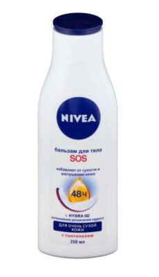 Бальзам для тела “SOS” от NIVEA обеспечивает глубокое увлажнение кожи тела на 72 часа’. Улучшенная формула* с Пантенолом, Ниацинамидом и Глицерином мгновенно успокаивает, снимает ощущение раздраженной кожи, обеспечивая комплексный уход. Бальзам усиливает способность кожи удерживать влагу. Средство обладает нежирной текстурой и быстро впитывается. Дерматологически протестировано. Для достижения лучшего результата наносите бальзам ежедневно на чистую и сухую кожу тела, повторно увлажняйте особенно сухие участки кожи, такие как локти, колени и голени. 1. 72 часа интенсивного увлажнения’ 2. С Пантенолом, Ниацинамидом и Глицерином 3. Мгновенно успокаивает, снимает ощущение раздраженной кожи 4. Для сухой и очень сухой кожи 5. Дерматологически протестировано Бренд NIVEA заботится о коже и планете, поэтому бутылочка сделана на 50% из переработанного пластика (исключая крышку). ‘Исследование 2021 г. SGS Institut Fresenius GmbH, Германия. *В сравнении с предыдущей формулой. SOS-СОС.