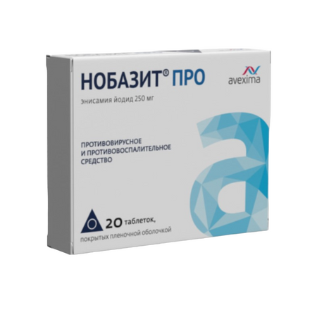 Таблетки, покрытые пленочной оболочкой желтого цвета, круглые, двояковыпуклые; на поперечном разрезе ядро от светло-желтого до желтого или желтого с зеленоватым оттенком цвета. Фармакологическое действие Противовирусное средство, производное изоникотиновой кислоты. Эффективно подавляет действие вирусов гриппа и других возбудителей острых респираторных вирусных инфекций (ОРВИ) за счет непосредственного (ингибирующего) влияния на процесс проникновения вирусов через клеточную мембрану. Обладает интерфероногенными свойствами, способствует повышению концентрации эндогенного интерферона (интерферона альфа и интерферона гамма) в плазме крови в 3-4 раза. Повышает резистентность организма к вирусным инфекциям. Снижает острые клинические проявления вирусной интоксикации, способствует сокращению продолжительности заболевания. Показания активных веществ препарата Нобазит® Про Лечение гриппа и других ОРВИ, в т.ч. в составе комплексной терапии.