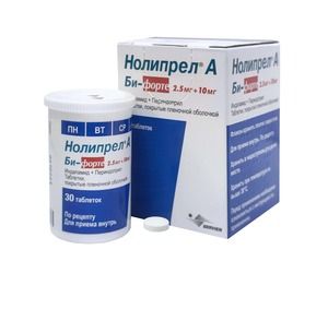 Показания к применениюЭссенциальная гипертензия (пациентам, которым требуется терапия периндоприлом в дозе 10 мг и индапамидом в дозе 2.5 мг).ПротивопоказанияПериндоприл: повышенная чувствительность к периндоприлу и другим ингибиторам АПФ, ангионевротический отек (отек Квинке) в анамнезе, связанный с приемом ингибитора АПФ, наследственный/идиопатический ангионевротический отек, двусторонний стеноз почечных артерий или стеноз артерии единственной почки, беременность, период грудного вскармливания, возраст до 18 лет (эффективность и безопасность не установлены).Индапамид: повышенная чувствительность к индапамиду и другим сульфонамидам, выраженная печеночная недостаточность (в т.ч. с энцефалопатией), гипокалиемия, одновременное применение с лекарственными средствами, способными вызвать аритмию типа пируэт, беременность, период грудного вскармливания, возраст до 18 лет (эффективность и безопасность не установлены).Нолипрел А-Би-форте: повышенная чувствительность к вспомогательным веществам, входящим в состав препарата, выраженная почечная недостаточность (КК менее 60 мл/мин), одновременный прием с калийсберегающими диуретиками, препаратами калия и лития и у пациентов с повышенным содержанием ионов калия в плазме крови, наличие лактазной недостаточности, галактоземия или синдром глюкозо-галактозной мальабсорбции, непереносимость лактозы, одновременный прием препаратов, удлиняющих интервал QT, из-за отсутствия достаточного клинического опыта препарат Нолипрел А-Би-форте не следует применять у пациентов, находящихся на гемодиализе, а также у пациентов с нелеченной сердечной недостаточностью в стадии декомпенсации, возраст до 18 лет (эффективность и безопасность не установлены).С осторожностью системные заболевания соединительной ткани (в т.ч. системная красная волчанка, склеродермия), терапия иммунодепрессантами (риск развития нейтропении, агранулоцитоза), угнетение костномозгового кроветворения, сниженный ОЦК (прием диуретиков, бессолевая диета, рвота, диарея), ИБС, цереброваскулярные заболевания, реноваскулярная гипертензия, сахарный диабет, хроническая сердечная недостаточность (IV функциональный класс по классификации NYHA), гиперурикемия (особенно сопровождающееся подагрой и уратным нефролитиазом), лабильность АД, пожилой возраст, проведение гемодиализа с использованием высокопроточных мембран (например, AN69) или десенсибилизация, аферез ЛПНП, состояние после трансплантации почек, стеноз аортального клапана/гипертрофическая кардиомиопатия.