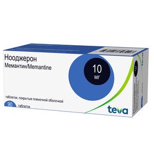 Показания к применениюДеменция альцгеймеровского типа умеренной и тяжелой степени.Применение при беременности и кормлении грудьюВ связи с возможной задержкой внутриутробного развития препарат Нооджерон не применяется при беременности. Исследования проведенные на животных указывают на возможность препарата вызывать задержку внутриутробного развития при использовании в дозах аналогичных терапевтическим у человека.Сведений о выведении мемантина с грудным молоком нет. Однако учитывая липофильность мемантина выделение возможно. Поэтому на время лечения препаратом Нооджерон грудное вскармливание необходимо прекратить.ПротивопоказанияПовышенная чувствительность к мемантину и другим компонентам препарата Тяжелая печеночная недостаточность (класс С по шкале ЧайлдПью) Беременность и период лактации Возраст до 18 лет (эффективность и безопасность не установлены).Побочное действиеНежелательные эффекты классифицированы в соответствии с частотой их развития: очень часто (≥ 1/10) часто (≥ 1/100 < 1/10) нечасто (≥ 1/1000 < 1/100) редко (≥ 1/10000 < 1/1000) очень редко (< 1/10000) неизвестная частота - имеющихся данных недостаточно для оценки частоты побочного эффекта.Инфекционные и паразитарные заболевания: нечасто - грибковые инфекции.Нарушения со стороны иммунной системы: часто - гиперчувствительность к компонентам препарата. Нарушения психики: часто - сонливость нечасто - спутанность сознания галлюцинации* неизвестная частота: психотические реакции.Нарушения со стороны нервной системы: часто - головокружение нарушения равновесия нечасто - нарушение походки очень редко - судороги.Нарушения со стороны сердца: нечасто - сердечная недостаточность.Нарушения со стороны сосудов: часто - повышение артериального давления нечасто - венозный тромбоз и/или тромбоэмболия. Нарушения со стороны желудочно-кишечного тракта: часто - запор нечасто - рвота тошнота неизвестная частота - панкреатит.Нарушения со стороны печени и желчевыводящих путей: часто - повышенные показатели печеночных ферментов неизвестная частота - гепатит. Нарушения со стороны дыхательной системы органов грудной клетки и средостения: часто - одышка.Общие расстройства и нарушения в месте введения: часто - головная боль нечасто - утомляемость.* Галлюцинации в основном наблюдались у пациентов с болезнью Альцгеймера на стадии тяжелой деменции.В постмаркетинговом периоде сообщалось о следующих нежелательных реакциях: агранулоцитоз лейкопения (включая нейтропению) панцитопения тромбоцитопения тромбоцитопеническая пурпура гепатит острая почечная недостаточность синдром Стивенса-Джонсона. ТЕВА