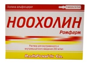 Показания к применению острый период черепно-мозговой травмы с преимущественно стволовым уровнем поражения; психоорганический синдром на фоне дегенеративных и инволюционных изменений мозга; последствия цереброваскулярной недостаточности (нарушения мыслительной функции); мультиинфарктная деменция.Применение при беременности и кормлении грудьюПрименение препарата при беременности и период лактации противопоказано.На время лечения следует прекратить грудное вскармливание.Препарат не обладает тератогенным и мутагенным действием.ПротивопоказанияГеморрагический инсульт (острая стадия);повышенная чувствительность к компонентам препарата.Побочное действиеСо стороны пищеварительной системы: запор, диарея, сухость слизистой оболочки полости рта, фарингит.Со стороны нервной системы: головная боль, сонливость, бессонница, агрессивность, тревога, нервозность, ишемия головного мозга, головокружение.Со стороны кожных покровов: сыпь, крапивница.Прочие: боль в месте введения, учащение мочеиспускания.СоставДействующее вещество: холина альфосцерат 250 мг;Вспомогательное вещество: вода