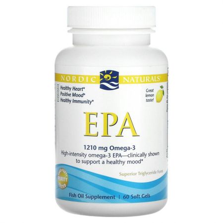 Менее 5 мг холестерина в порции. Здоровое сердце Хорошее настроение Здоровый иммунитет Отличный лимонный вкус! 1210 мг омега-3 Результаты исследований показали, что высокоинтенсивные жирные кислоты ЭПК омега-3 поддерживают хорошее настроение Подтверждено отсутствие ГМО Сертификат Third-Party Purity Tested Улучшенная форма триглицерида Пищевая добавка ЭПК от Nordic Naturals поддерживает иммунитет, работу клеток и здоровье сердечно-сосудистой системы. Также клинические исследования показали, что эта высокоинтенсивная формула с ЭПК омега-3 поддерживает хорошее настоение. Дикая рыба. Чистый продукт. Без рыбного послевкусия. Сертификат Friend of the Sea. Каждая партия рыбьего жира Nordic Naturals проверяется в независимой сертифицированной лаборатории на наличие токсинов, в том числе тяжелых металлов. Весь рыбий жир поставляется в форме триглицеридов и отвечает самым строгим международным стандартам чистоты и свежести.