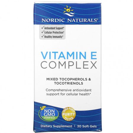 † Суточная норма не определена. Антиоксидантная поддержкаЗащита на клеточном уровнеЗдоровье иммунной системыСмешанные токоферолы и токотриенолыКомплексная антиоксидантная поддержка на клеточном уровнеСертификат Non GMO VerifiedСертификат Third-Party Purity TestedПищевая добавкаСоотношение токотриенолов и альфа-токоферола 4:1Продукт протестирован сторонней организацией на чистоту и эффективностьПодтвержденное исследованиями соотношение альфа-токоферола и токотриенолов для лучшего усвоения и биодоступности.Витамин E — это жирорастворимый антиоксидант, который помогает остановить выработку свободных радикалов во время окисления жиров. Хотя окисление является нормальным и необходимым процессом для поддержания химического баланса в клетках, окислительный стресс может возникать, когда количество свободных радикалов регулярно превышает количество присутствующих антиоксидантов.Комплекс витамина E Nordic Naturals Vitamin E содержит шесть форм главного антиоксиданта витамина E в одной мягкой таблетке, которую легко глотать. Эта уникальная формула без сои содержит подтвержденное исследованиями соотношение альфа-токоферола и токотриенолов, которое не влияет на биодоступность различных форм, помогает защитить клетки от окислительного стресса, способствует здоровью клеток, метаболическому балансу и здоровой иммунной реакции.