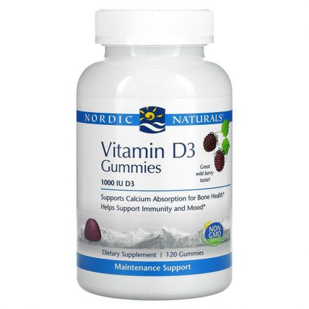 Прекрасный вкус лесных ягод! 1000 МЕ D3 Способствует усвоению кальция для поддержки здоровья костей Помогает поддерживать иммунную систему и настроение Сертификат Non GMO Verified Пищевая добавка Профилактика Содержит суточную норму витамина DДавно известна важная роль витамина D в регулировании уровня кальция и фосфора в организме и поддержке количества минералов в костях. Витамин D3 Nordic Naturals — это холекальциферол, натуральная наиболее легко усваиваемая и используемая форма витамина D. Каждая вкусная жевательная таблетка содержит 1000 МЕ витамина D3 без искусственных красителей и ароматизаторов.