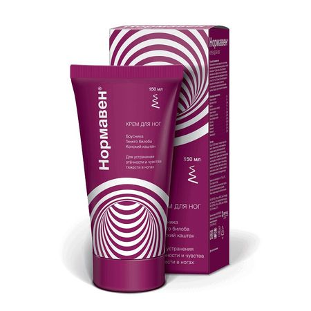 НОРМАВЕН® крем для ног состоит из тщательно подобранных активных компонентов натурального происхождения, которые снимают чувство усталости и тяжести в ногах, уменьшают отёчность, помогают переносить длительные статические нагрузки на ноги, способствуют исчезновению ночных судорог и дарят ногам ощущение комфорта.Безопасен. Можно использовать в период беременности.Консистенция: кремовая, средней густоты.Текстура: с небольшим ощущением жирности, но не липкая. Крем хорошо наносится, распределяется и моментально впитывается.Запах насыщенный, ментоловыйКрем имеет слегка бежевый оттенокВенотонизирующее средство12 активных компонентов способствуют:Снятию усталости и чувства тяжести в ногах;Устранению и предотвращению отеков;Уменьшению сосудистого «рисунок»;Укреплению стенок кровеносных сосудов;Увеличению сопротивляемости капилляров и поддержанию оптимального тонуса сосудистой стенки;Улучшению внешнего вида кожи.Активные компоненты:Экстракт полыни …………………………………………………5%Экстракт брусники………………………………………………..2%Ментол…………………………………………………………….1,5%Экстракт конского каштана………………………………………1%Экстракт арники…………………………………………………..1%Пантенол…………………………………………………………..0,5%Экстракт зелёного чая…………………………………………….0,3%Экстракт гинкго билоба………………………………………….0,2%Масло лимона……………………………………………………..0,2%Витамин С…………………………………………………………..0,15%Витамин А…………………………………………………………0,1%Витамин Е………………………………………………………….0,1%Активные компонентыКомпонент — ЭффектКаштана экстракт Относится к сильным антиоксидантам; является источником эскулина, эсцина, флавоноидов, которые стимулируют процессы тканевого обмена, устраняют чувство тяжести и усталости в ногах.Зеленого чая экстракт Является сильнейшим природным антиоксидантом, стимулирует углеводородный и липидный обмен, уменьшает отёчность.Гинкго билоба экстракт Оказывает венотонизирующее, антигипоксантное действие, нормализует обмен веществ в клетках и улучшает микроциркуляцию кожи.Брусники экстракт Обладает хорошими общеукрепляющими и тонизирующими свойствами за счёт содержания полезных органических кислот, пектина и витаминов.Арники экстракт Стимулирует микроциркуляцию, ускоряет процесс рассасывания синяков и помогает сократить выраженность сосудистых «звездочек».Пантенол Ускоряет процессы регенерации, увлажняет, питает и защищает кожу.Полыни экстракт Относится к природным антисептикам, обладает заживляющими свойствами.Ментол Оказывает местнораздражающее действие, успокаивает кожные рецепторы, облегчая состояние и уменьшая дискомфорт в ногах.Витамин А Способствует синтезу гиалуроновой кислоты в эпидермисе кожных покровов, сохраняя эластичность кожи.Витамин С Является мощным антиоксидантом, регулирует и стимулирует синтез коллагена, способствует укреплению соединительной ткани.Витамин Е Защищает клеточные структуры от разрушения свободными радикалами, стимулирует процесс образования коллагена и эластина.Лимона масло Поддерживает упругость и эластичность кожи, повышает её тонус.