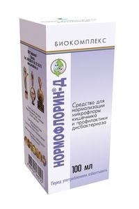 Нормофлорин®-Д является синбиотическим комплексом, в состав которого входит несколько штаммов лактобацилл и бифидобактерий, находящихся в физиологически активном состоянии в жидкой питательной среде.Обладает способностью сразу же после приема оказывать мощное антагонистическое действие по отношению к возбудителям многих инфекционных заболеваний благодаря эффектам, полученным в результате синергизма микроорганизмов в его составе, а также способностью воздействовать на лимфоидный аппарат кишечника.Уникальность и особенность Нормофлорина®-Д заключена в способности лакто- и бифидобактерий взаимодействовать и создавать вокруг себя среду, в которой в считанные минуты погибают сальмонеллы и шигеллы, стафило- и стрептококки, патогенные виды кишечной палочки и другие возбудители острых и хронических инфекций в организме.Кроме того, натуральные микробные метаболиты в высокой концентрации поддерживают и обеспечивают основные обменные процессы в организме. Нормофлорин®-Д не содержит молочного сахара и коровьего белка, и поэтому рекомендован людям, страдающим аллергией. В короткие сроки подавляет активность патогенной микрофлоры, препятствует проникновению в организм эндотоксинов; Восстанавливает защитную биопленку на всех слизистых, моторику кишечника; Снижает уровень холестерина и оксалатов; Расщепляет лактозу. Специально подобранные штаммы в составе Биокомплекса обладают выраженным иммуномодулирующим действием, снижают риск развития атопического дерматита за счет стимуляции выработки интерферонов и поддержанию общего пула иммуноглобулинов. Обладает менее выраженной кислотностью, что позволяет использовать его в программах лечения кислотозависимых заболеваний (язвенная болезнь, эрозивные поражения слизистых).