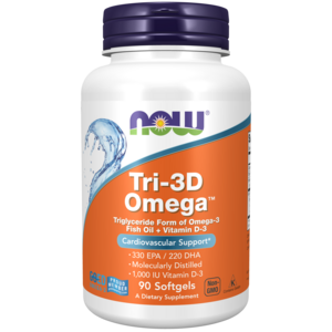 NOW Три-3Д Омега – натуральный концентрат рыбьего жира, который производится в соответствии со строгими стандартами контроля качества. Он проверен на отсутствие потенциально опасных уровней загрязнений, таких как ПХД, диоксины, ртуть и другие тяжелые металлы. Многочисленные исследования показывают, что потребление Омега-3 жирных кислот ЭПК и ДГК может снизить риск развития ишемической болезни сердца. Добавлен витамин D3, поскольку он контролирует работу иммунной, сердечно-сосудистой, эндокринной, гормональной и нервной систем.NOW® Три-3Д Омега обладает следующими полезными свойствами: Улучшает работу сердечно-сосудистой системы Поддерживает работу нервной системы Улучшает функцию головного мозга Положительно влияет на когнитивные функции Уменьшает боли при ПМС Помогает при кожных заболеваниях Снижает воспалительные процессы Улучшает настроение.