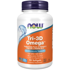 NOW Три-3Д Омега – натуральный концентрат рыбьего жира, который производится в соответствии со строгими стандартами контроля качества. Он проверен на отсутствие потенциально опасных уровней загрязнений, таких как ПХД, диоксины, ртуть и другие тяжелые металлы. Многочисленные исследования показывают, что потребление Омега-3 жирных кислот ЭПК и ДГК может снизить риск развития ишемической болезни сердца. Добавлен витамин D3, поскольку он контролирует работу иммунной, сердечно-сосудистой, эндокринной, гормональной и нервной систем.NOW® Три-3Д Омега обладает следующими полезными свойствами: Улучшает работу сердечно-сосудистой системы Поддерживает работу нервной системы Улучшает функцию головного мозга Положительно влияет на когнитивные функции Уменьшает боли при ПМС Помогает при кожных заболеваниях Снижает воспалительные процессы Улучшает настроение.