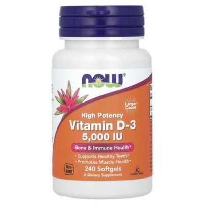 Больший размерПоддержка опорно-двигательного аппаратаПомогает сохранять кости крепкимиПоддерживает иммунную системуБез ГМОПищевая добавкаКошерный продукт, содержит желатинВитаминыСемейное предприятие, основанное в 1968 годуИмеет регистрацию GMPКапсулы с витамином D3 от компании NOW® предоставляют этот важнейший витамин в легкоусвояемой жидкой форме. Обычно витамин D попадает в организм из еды либо вырабатывается кожей под воздействием солнечных ультрафиолетовых лучей. Однако в еде он содержится в недостаточном количестве. Поскольку многие люди стараются избежать воздействия солнечных лучей, необходимость в дополнительном приеме витамина D становится все более важной.