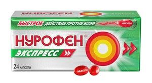 Мягкие овальные капсулы с красной полупрозрачной желатиновой оболочкой, с идентифицирующей надписью белого цвета «NUROFEN», содержащие прозрачную жидкость от бесцветного до светло-розового цвета.